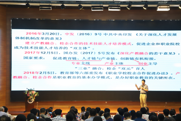 近四个小时的讲座,曹勇安教授用幽默风趣的语言、鲜活生动的案例,对“基于产教融合的课程改革”做了深入的阐述。