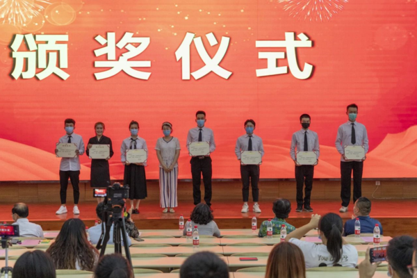 活动中,学校领导为本届获奖的优秀学员颁奖,其中授予刘慧锋、聂晓楠等10位同学“学习能力奖”称号,授予肖纪朋、张朕桠等7位同学“创新能力奖”称号,授予石震乾、郭晓媛等7位同学“实践能力奖”称号,授予毕晨昕、赵琦等9位同学“组织能力奖”称号。在大数据词频《我和实验班的故事》环节,聂晓楠、吕嵩慧、赵欢等学生代表分别以态度、起航、坚持等讲述了在实验班的学习和生活,为表达对实验班的感恩之心,第四届实验班学子众筹佳能照相机一台。在典礼的最后,各处、各学院的领导对第四届“1+1”实验班学子进行了一句话勉励,鼓励同学们以此为起点,不负韶华,乘风破浪,坚定前行,成就自己,为科院争光,已经毕业的优秀校友也通过视频向第四届实验班学生表达了结业祝福。结业典礼结束后,学校领导与第四届实验班学生合影留念。