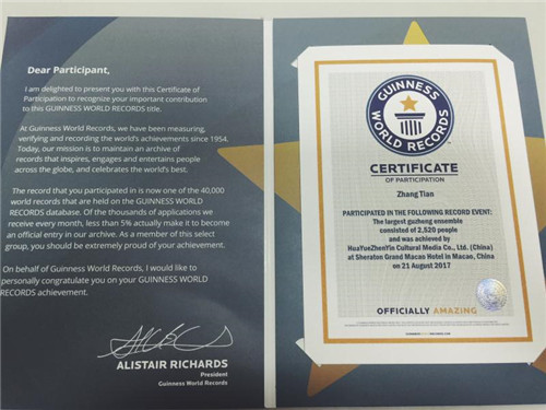 我校师生赴澳门成功挑战古筝合奏吉尼斯世界纪录并荣获证书