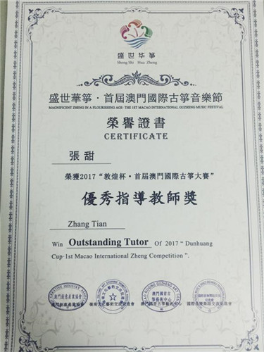 近日,我校音乐学院古筝专业教师张甜带领16级音乐表演专业学生周壹及12届毕业生魏荣赴澳门与其他来自全球各地的2500多名选手共同参加“盛世华筝”古筝合奏吉尼斯世界记录挑战赛并挑战成功,张甜,周壹、魏荣分别获得了吉尼斯世界纪录证书。与此同时,周壹同学在“敦煌杯”2017首届澳门国际古筝大赛中获得青年专业组古筝独奏铜奖,张甜老师荣获2017首届澳门国际古筝大赛优秀指导教师奖。