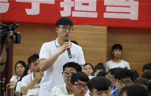 伴随宋校长精彩讲述的,还有师生的积极互动。建工学院辅导员方承周、管理学院教师刘晓莉、建工学院工程造价1605班赵熠、管理学院物流管理1602班李越 、“1+1”实验班第三届班长王越踊跃发言,表达对宋校长坚持不懈、自强不息奋斗精神的由衷敬佩。