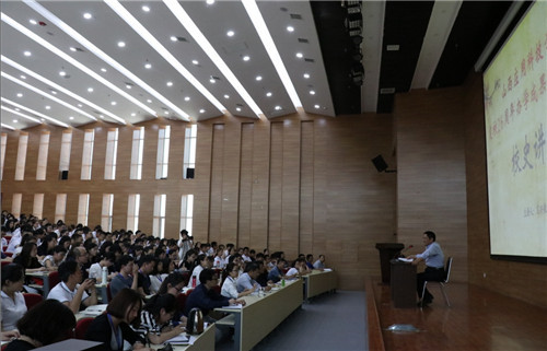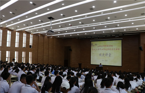 5月17日下午,建校26周年办学成果展系列活动之“校史讲堂”开讲。学术报告厅气氛热烈,座无虚席,师生欢聚一堂,认真聆听宋兴航校长对校史的回顾,讲述科院故事,弘扬科院精神。