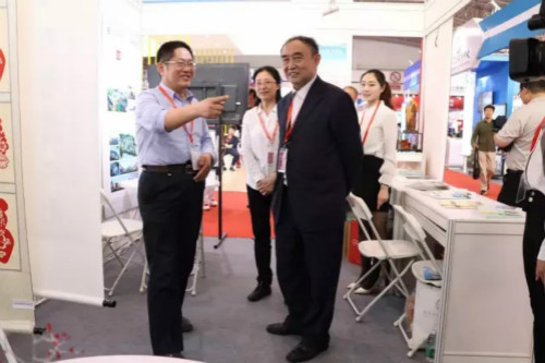 在博览会现场,全国政协副主席马培华莅临我校展览现场。校长宋兴航向他汇报了办学情况。马培华副主席对宋校长进行了热切勉励,并对我校26年的办学成果给予了充分肯定。
