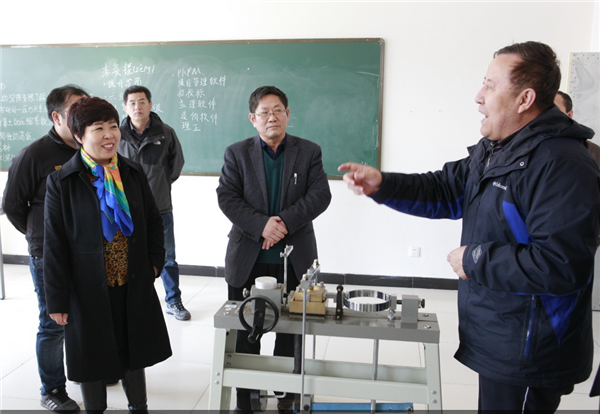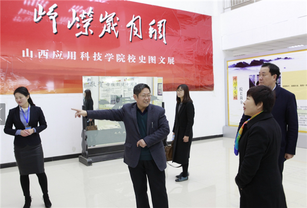 各位领导先后参观了我校修建性详规模拟沙盘、学生公寓、汽车实训室、实训中心、孔子文化园、图书馆、校史展、书画室等地。