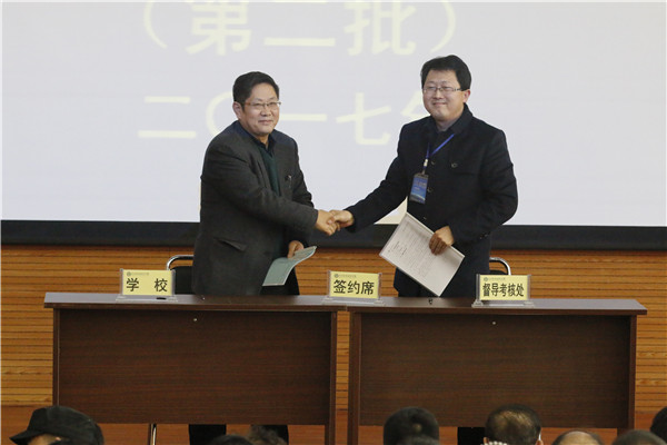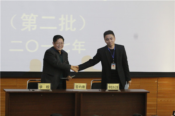 3月7日下午,我校在学术报告厅举行2017年度第二批部门目标管理绩效考核责任书签订仪式。至此,我校2017年度所有部门责任书已全部签订完毕。校长宋兴航,党委书记郭巍伟,副校长王复兴、方熔,教指委常务副主任周全寿,校长助理贺有,校务委员张德贵、米万锁、常永翔和全校教职工参加了签订仪式。