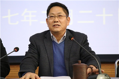 王复兴副校长围绕科研工作和教师培训工作讲话。第一,扎实推进科研工作、申报工作。作为应用本科院校,我校应加强应用科技与企业的横向联系,希望在此科研方面有所突破。实施并深化校级科研立项,同时,改变许多学校只重视争取课题立项、不重视课题研究工作问题。第二,树立学科建设意识,研究启动科学建设。具体实施过程中,列出人才引进和培养的具体计划,明确科研工作目标。第三,完善教师发展中心工作。结合教师地位的重要性、职位的神圣性,积极进行教师培训、技能培训,快速提升教师队伍水平。