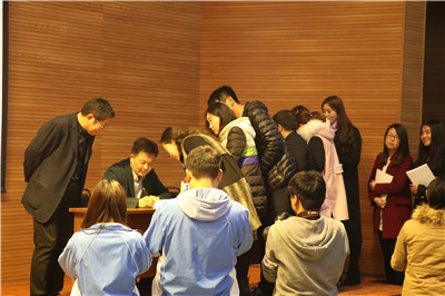 最后,老师和同学们积极提问,张总编一一耐心解答,并提出以下希望:望同学们能够积累更多的生活、工作经验,弘扬和继承中华文化的同时为把中国推向世界做准备,抓住机遇,做到今日事今日毕,倒逼自己,不留退路。