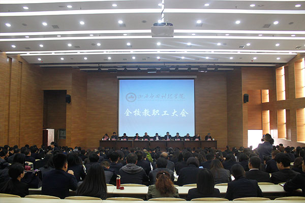 10月 19 日下午,我校 2015 年 10 月全校教职工大会在学术报告厅举行。校长宋兴航,党委书记郭巍伟,副校长王复兴,督学李维生,党委副书记兼校长助理原美荣,教学指导委员会常务副主任周全寿教授,校长助理贺有,建工学院院长张泽平教授,艺术学院院长米万锁教授,管理学院院长常永翔副教授,图书馆馆长梁福有教授出席会议,全校教职工参加会议。会议由党委副书记兼校长助理原美荣同志主持。