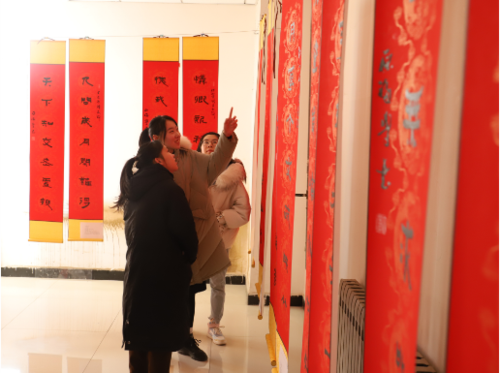 开幕式结束后,现场师生纷纷进入展厅欣赏楹联书法作品。
