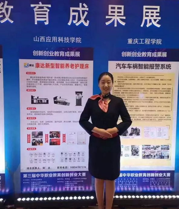 11月16日至19日,以“职教育工匠、双创筑梦想”为主题,由中华职业教育社主办,教育部、人力资源和社会保障部指导的第三届中华职业教育创新创业大赛在安徽合肥盛大开赛。我校“1+1”实验班宋达团队项目“康达智能养老护理床”的创新性、技术性、实用性受到评委和参赛人员的关注,团队成员宋达、郝景明、刘煌凭借精彩的路演和应对自如的答辩一举斩获大赛一等奖,并以全国第三的好成绩打破海角网省在本项赛事中的全新记录,实现了我校乃至海角网省中华职业教育创新创业大赛国赛一等奖零的突破。“1+1”实验班班主任白龙杰被评为“优秀指导教师”,我校荣获竞赛组织奖。