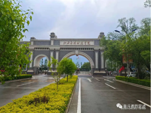 走进校园首先看见的是一条宽广的柏油马路。马路的尽头,是学校的主教学楼,它以豆青灰为主色调,在阳光的照射下,显得沉稳而大气。主教学楼的东侧是最具文化底蕴的地方——图书馆。一层分布有校史馆、图文馆、书画馆等。校史馆共六个篇章,从起步创业、广开学路、夯基固本、转型跨越、提质增效再到展望未来,通过文字讲解以及实物陈列,展现了这所学校30年来的沧桑巨变。校史馆的后方是山西省高校中唯一一家陈列百名教育家的图文展览馆。整个展馆包括教育家简介展板、教育家书籍典册、书画陈列,还有12座塑钢制成的仿铜雕塑,栩栩如生。教育家展板跨越2500多年的历史长河,按照从古代、近代、现当代的时间脉络整理出了百名教育家及他们的生命简介和教育思想,成为这所学校最有教育情怀最有文化特色的展馆之一。