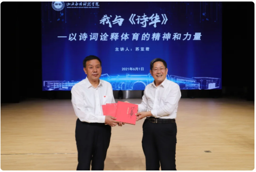 省政协常委、教科卫体委员会主任、省体育总会主席苏亚君为我校师生讲述“我与《诗华》”