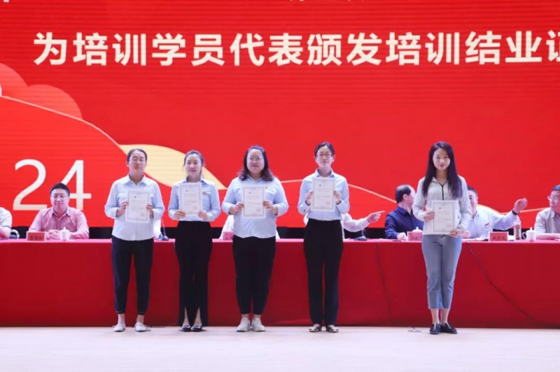 在喜庆的音乐声和热烈的掌声中,出席大会的领导为本次培训中获得“最受欢迎的主讲教师”“教学基本功竞赛获奖教师”“优秀学员代表”“优秀教研室”“优秀组织单位”的个人和单位颁发了荣誉证书。出席大会领导还为培训学员代表颁发了培训结业证书。