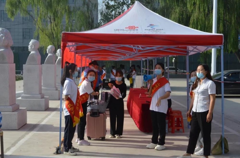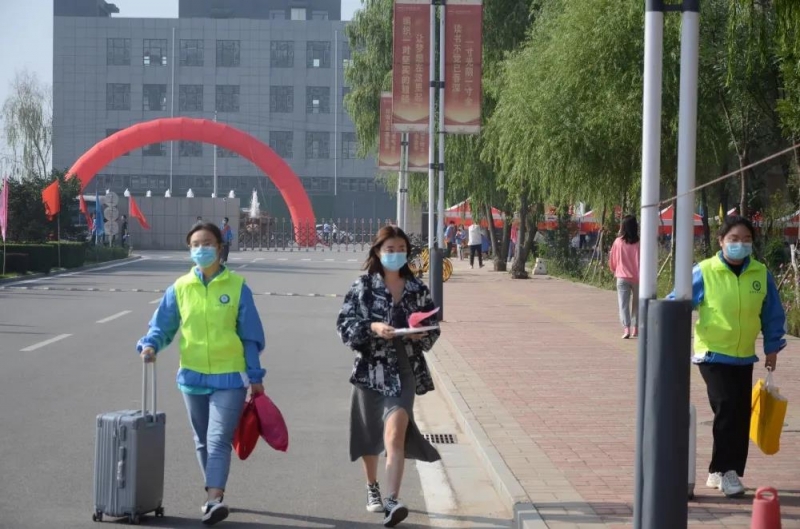 我校全体迎新工作人员全部就位,他们各司其职又互相配合,以高昂、饱满的精神状态高效有序地完成各项接待任务。接待组的工作人员带领新生顺利完成了报到、注册、验证等各项工作并为新生解答疑惑。各二级学院接待组、学生工作组和学生志愿者带领新生完成学院归属、行李搬运、公寓入住等相关事宜。后勤保障处的工作人员则将标语、飘带彩虹门等张贴悬挂,搭建了迎接展棚,将校园收拾得更加整洁美观,为迎新各项工作提供了水、电、餐以及防疫检查和卫生消杀等保障。安全保卫处对来往车辆进行登记、四处巡逻,时刻做好安全防范保卫工作。车辆接站点的司机们则将一批批的新生安全送达。督导组人员则四处巡视检点,保证迎新各环节流畅顺行。校园广播响彻校园,不断播放着新生报到注册的相关事宜和学校其他信息。环顾校园,滚动的电子屏、欢迎的宣传横幅、大红的标语、招展的彩旗、醒目的宣传展板等把整个校园装点得喜庆耀眼,各二级学院以自己独有的方式迎接自己的学子……现场气氛热烈火爆、平安祥和。