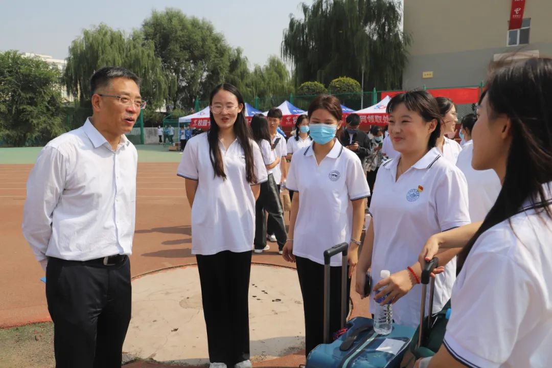 迎新日当日,党委书记薛智,党委副书记、副校长原美荣,副校长贺有等校领导亲临迎新现场,深入各迎新接待处、咨询处检查指导;副校长柴跃生则来到了各个车辆接待处检查指导。他们对学校的安保秩序、疫情防控、后勤保障、公寓服务以及接待细节等提出指导性意见和建议。他们同新生亲切交流,与工作人员、志愿者深入交谈,鼓励各迎新工作人员拿出科院的精气神,全心全意将迎新工作做好,他们强调要关注学生需求,提升服务水平,为新生提供优质服务。