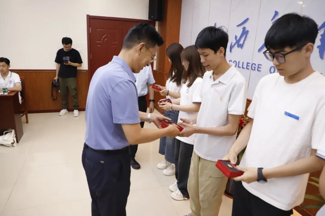 会议期间,学校领导为30名优秀毕业生代表赠送纪念品,并合影留念。