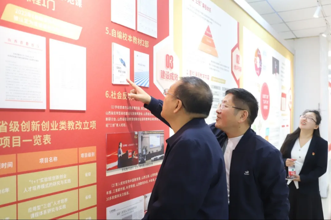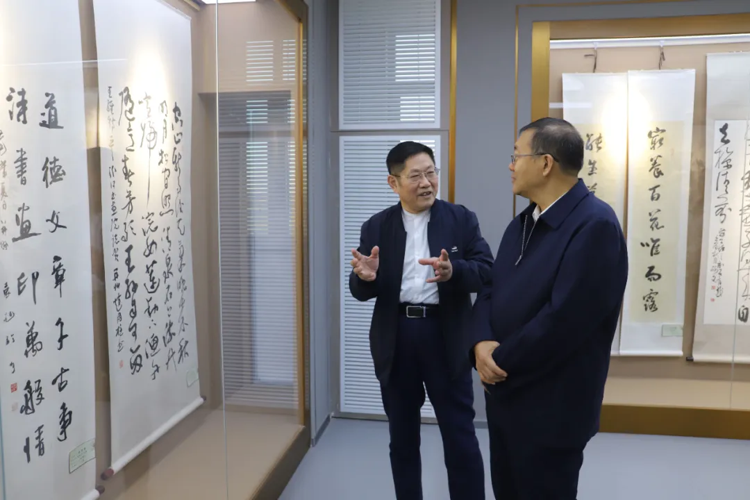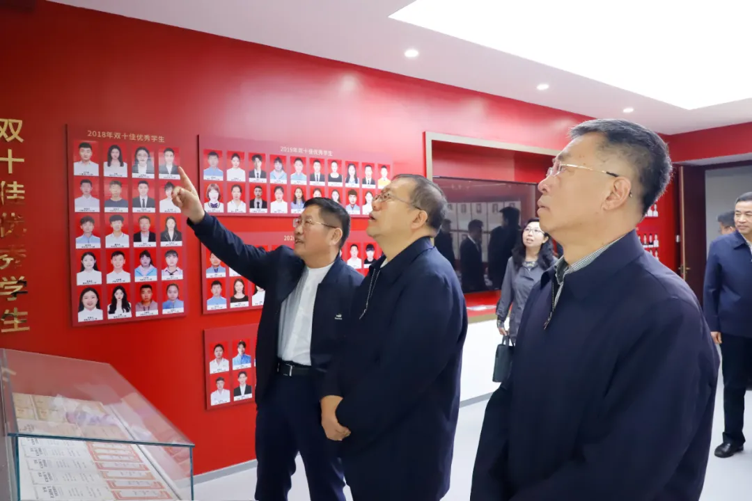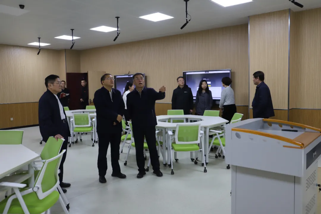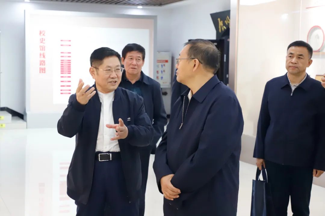 调研中,梁敬华一行参观了学校规划沙盘、智慧教室、档案室、荣誉室、名家书画鉴赏实训室,实地走访了东湖文化公园、拓荒精神育人基地、体育馆、艺术大楼大剧场、文科实训楼、美术学院实训室、教师公寓,对我校的办学情况、基础设施和办学特色给予了很高的评价,充分肯定了我校在三创育人,产教融合等工作上取得的成绩。