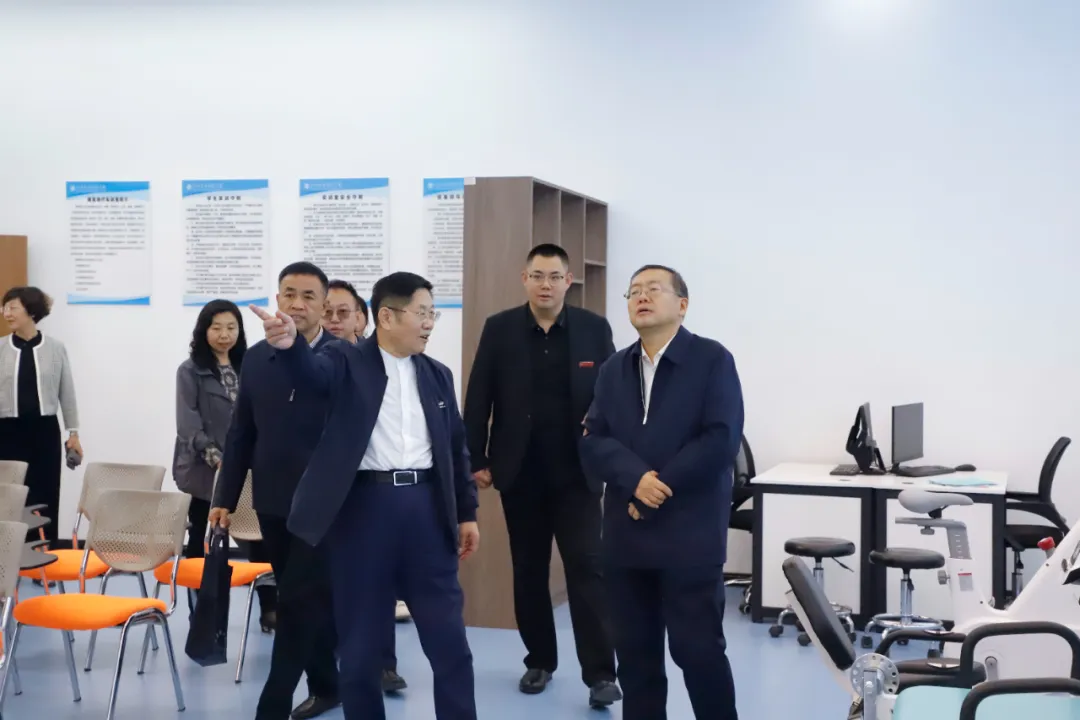 在文科实训楼,梁敬华一行走进虚拟仿真实训室、大健康管理实训室、康复理疗实训室,现场体验了虚拟人体系统、人体成分分析、汽车修理等实验设备,参观了面向金融、学前教育、电商、酒店管理等专业的实训室,详细了解了师生人数、课程教学情况、培训模式等情况,充分肯定了我校结合市场需求培养服务地方经济发展的应用型人才,并就进一步加强成果转化及应用提出了建设性意见。