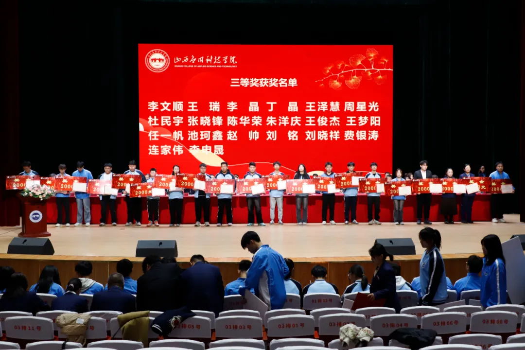 在表彰环节,副校长郝海龙宣读了表彰文件,并宣布了获奖名单。与会领导嘉宾为活动中荣获一等奖、二等奖、三等奖、优秀组织奖的学院、教师和学生颁发了荣誉证书。
