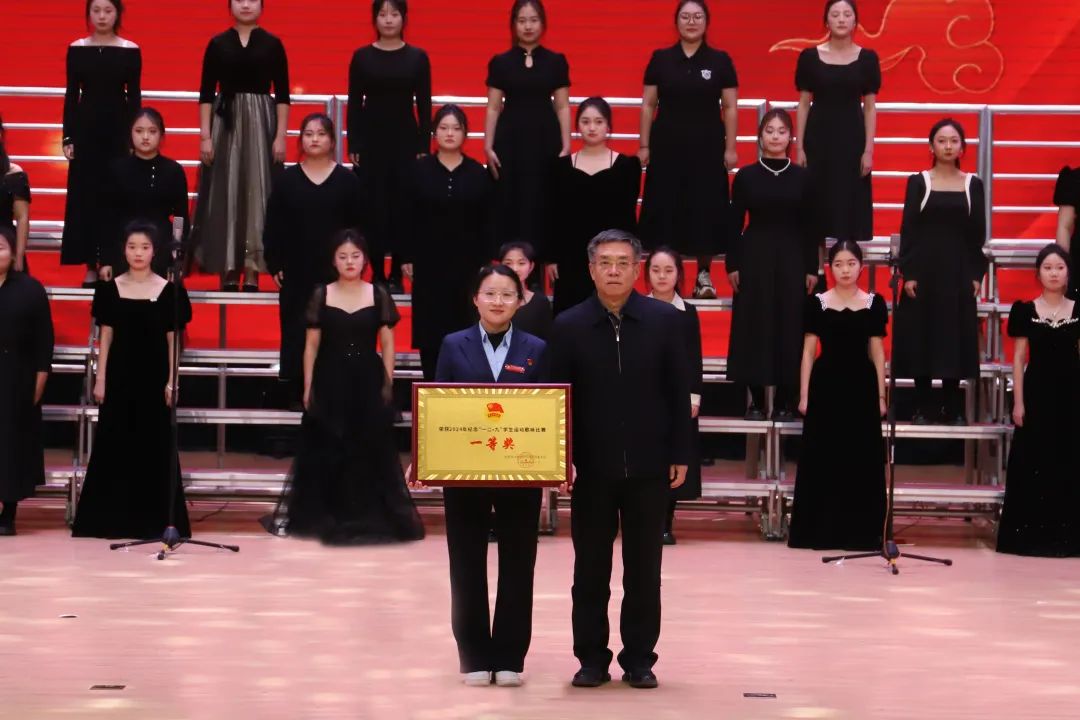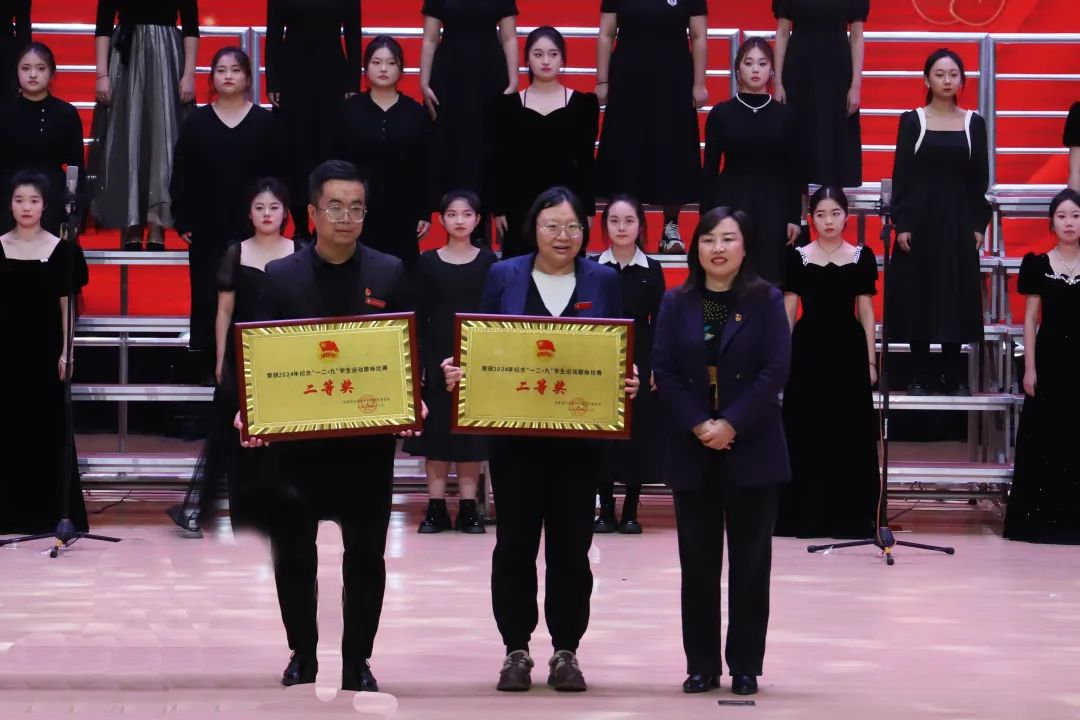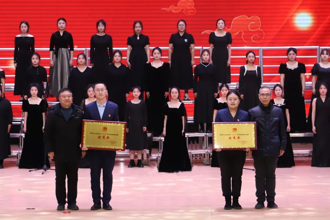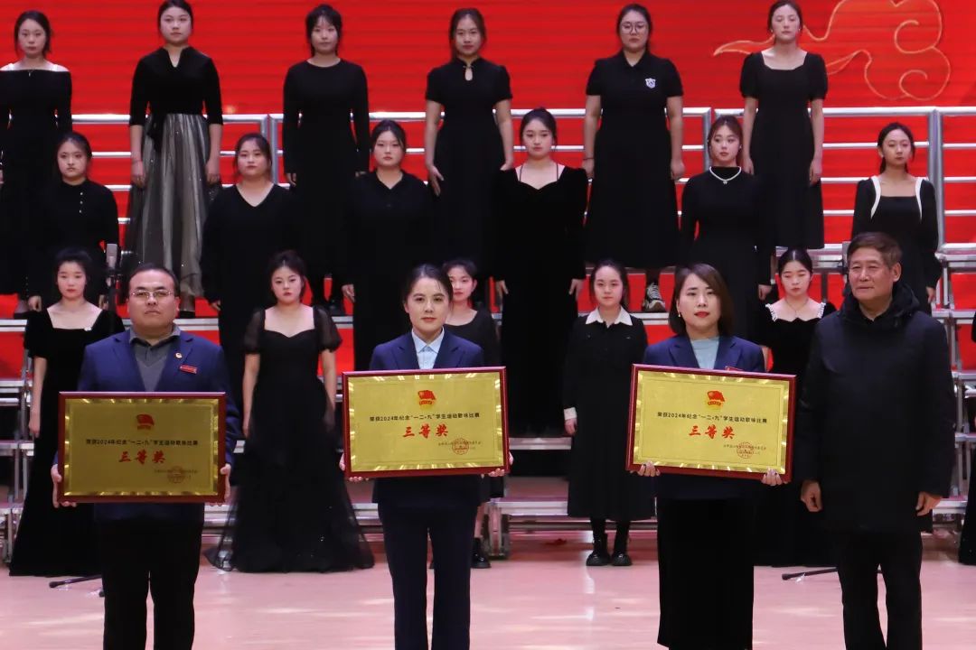 经过激烈的角逐和公正的评判,音乐学院在比赛中脱颖而出,获得一等奖。文化传媒学院、财经学院获得二等奖。信息工程学院、美术学院、动力与电气工程学院获得三等奖。管理学院、建工学院获得优秀组织奖。在热烈的掌声中,校领导为获奖学院颁奖。
